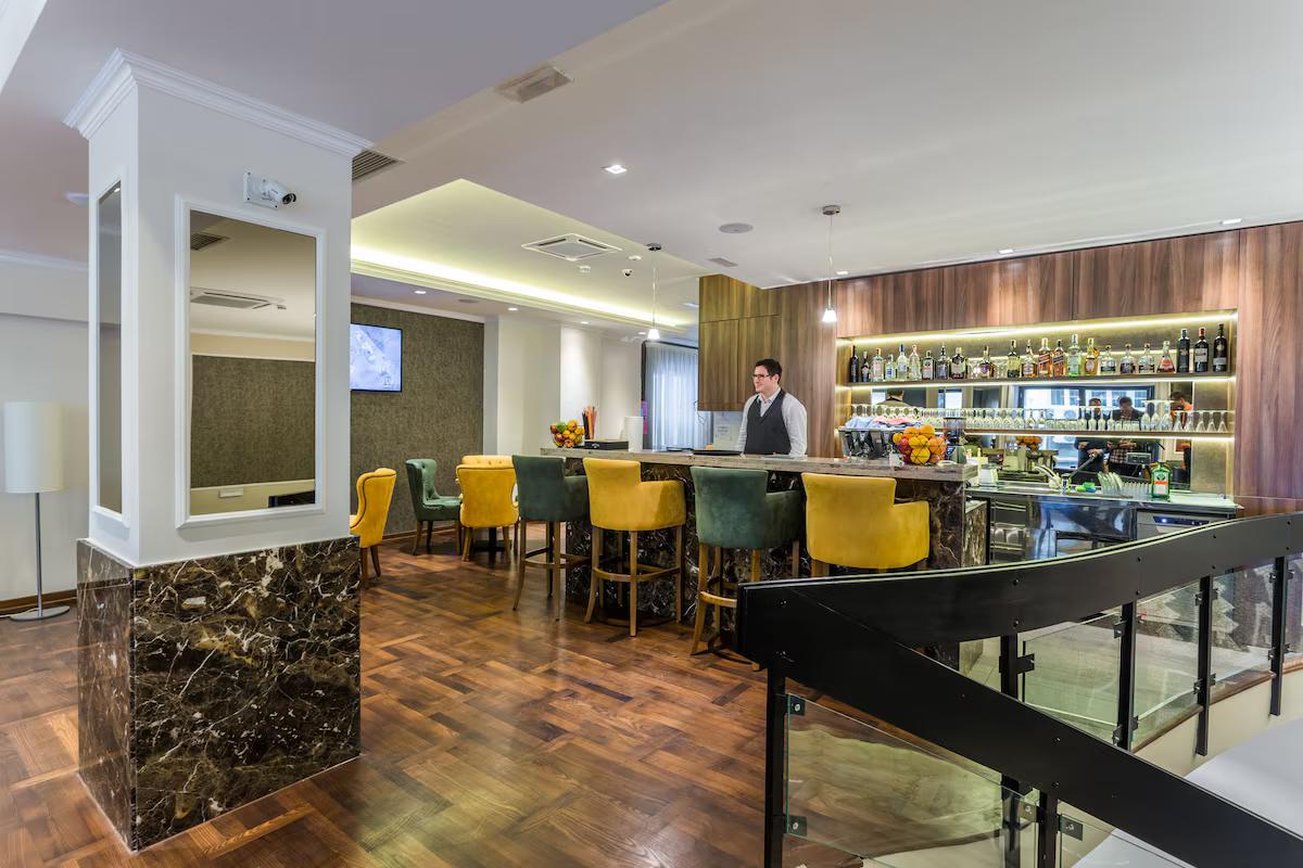 Efter en dag fyldt med oplevelser kan du nyde traditionelle serbiske specialiteter i hotellets restaurant eller slappe af med en drink i den elegante kaffebar. Om morgenen venter en generøs morgenbuffet, der giver dig energi til dagens eventyr.