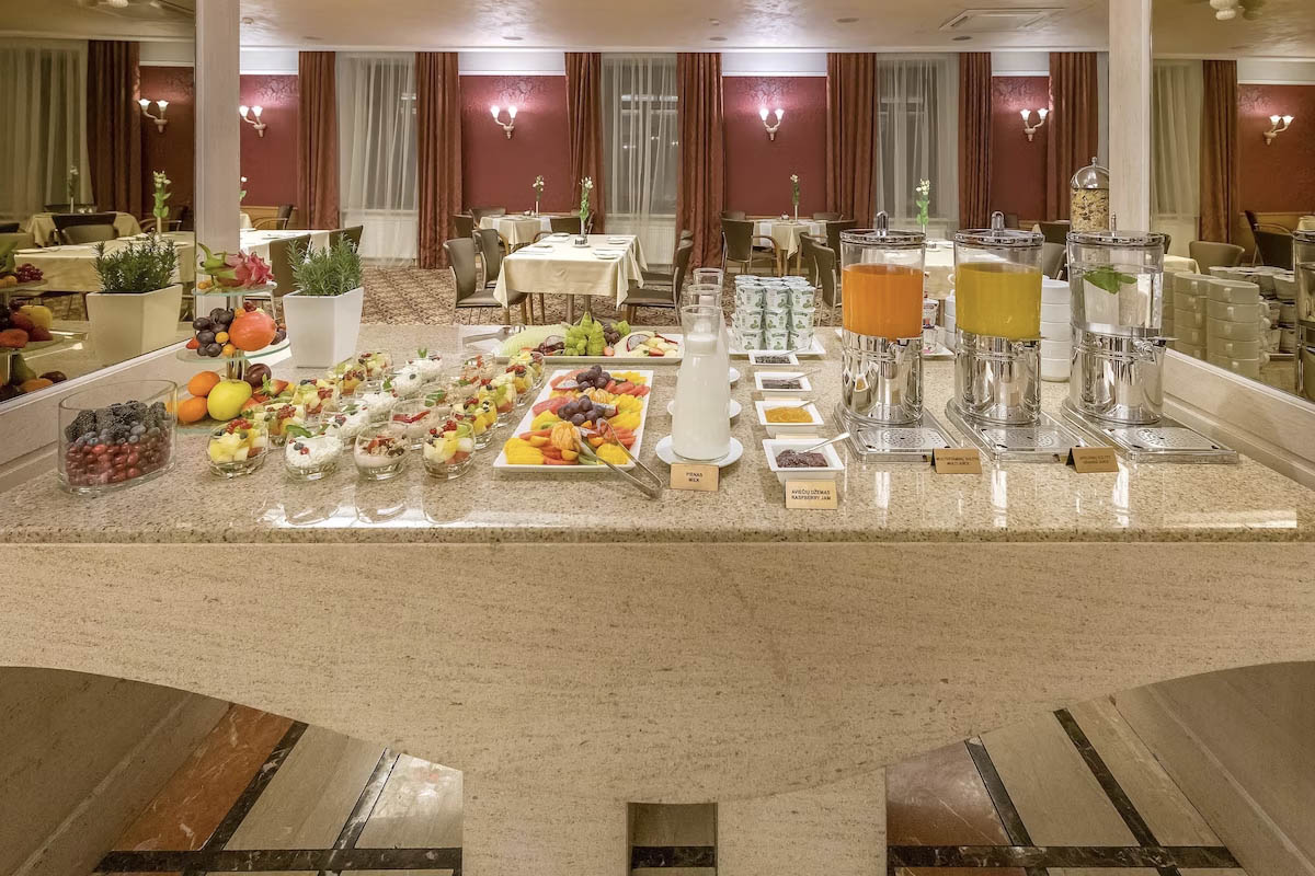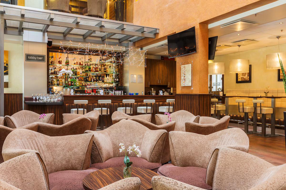 I Lobby Baren kan du få en drink eller en øl og slappe af efter en dag i byen. Det er også her, du spiser morgenmad – en god buffet med international mad og friske ting. Oppe på taget er der et flot lokale med udsigt over de gamle kirker og tårne i byen.