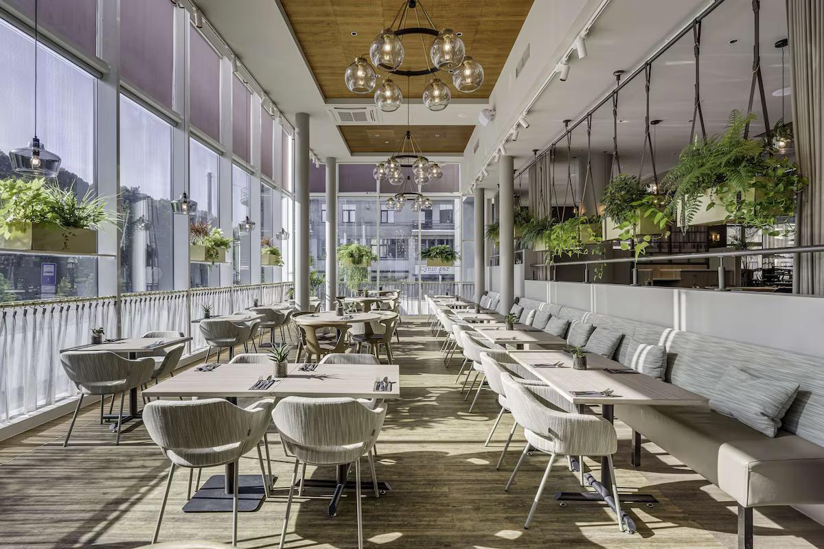 Værelserne er moderne, lyse og udstyret med alle almindelige bekvemmeligheder. Nogle af dem vender ind mod hotellets store lobby, hvilket giver en sjov oplevelse af at kigge ned på det liv, der foregår dernede. Og apropos lobby, finder du her hotellets bankende hjerte, lobbybaren, hvor du kan få en drink eller en øl og slappe af efter en dag i byen. Det er også her, du spiser morgenmad, og oppe på taget er der et flot lokale med udsigt over byens gamle kirker og tårne.