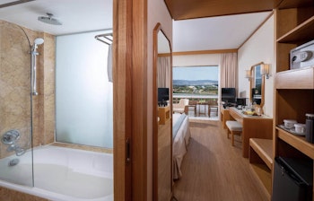 Alle værelser har store balkoner med udsigt enten til havet eller de omkransende landskaber og har inkluderet faciliteter såsom aircondition, fladskærms-TV, radio, minibar, hårtørrer samt kaffe- og tefaciliteter.