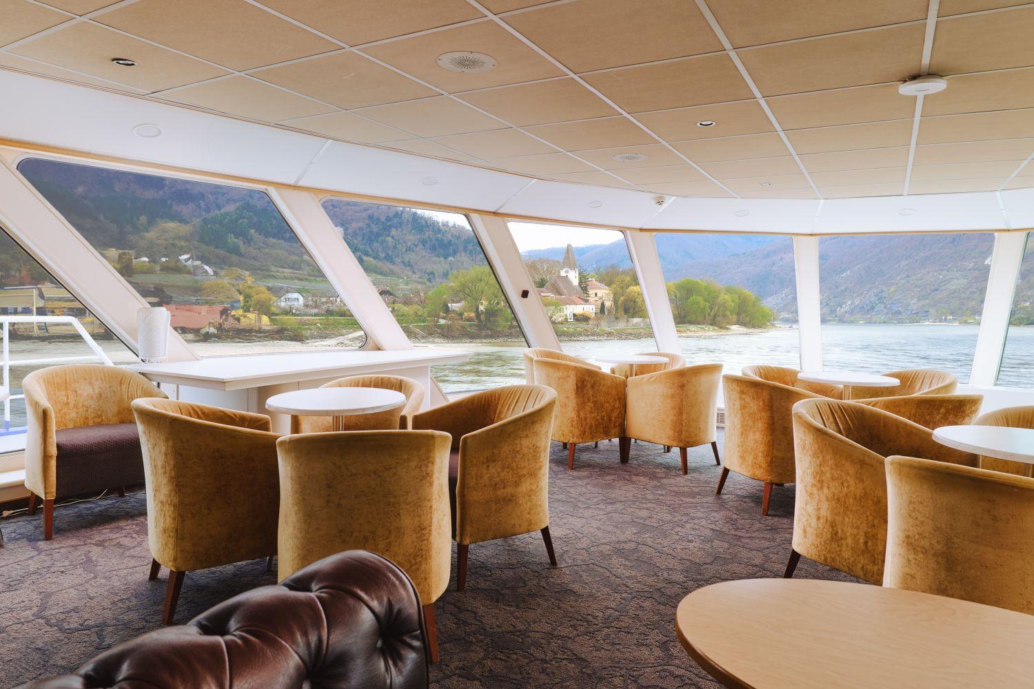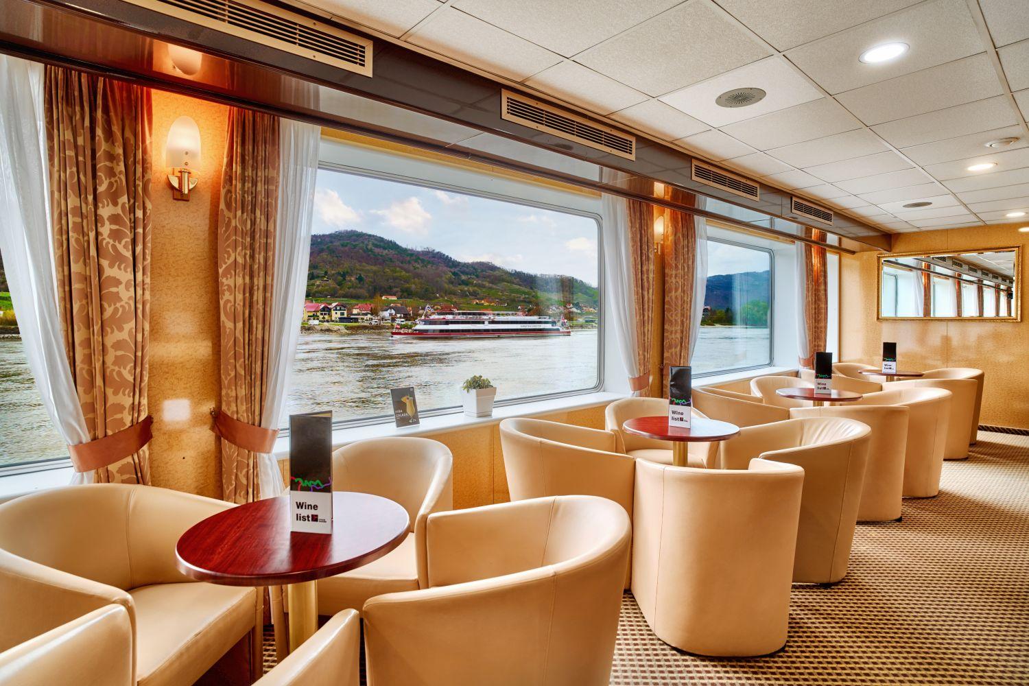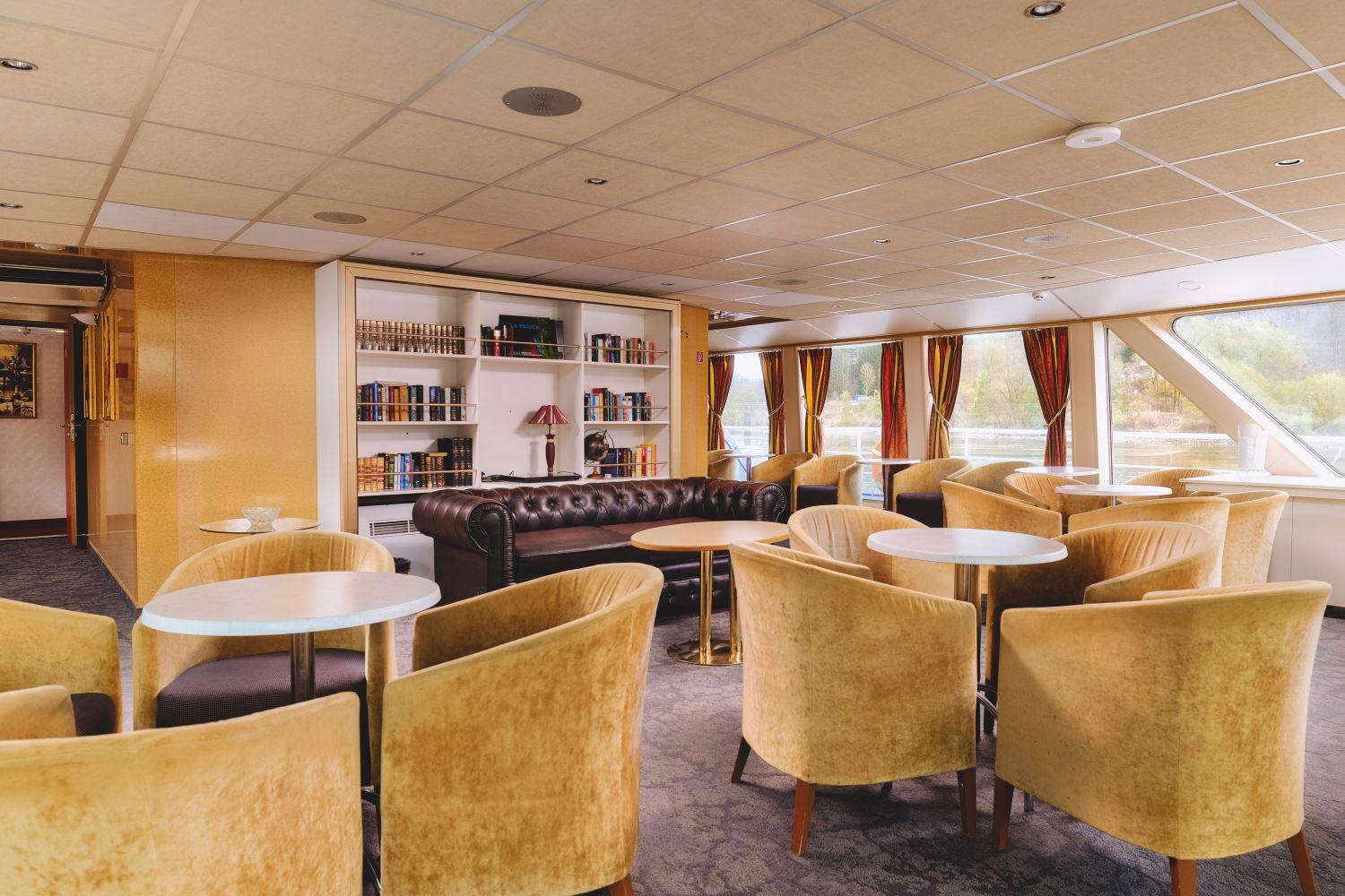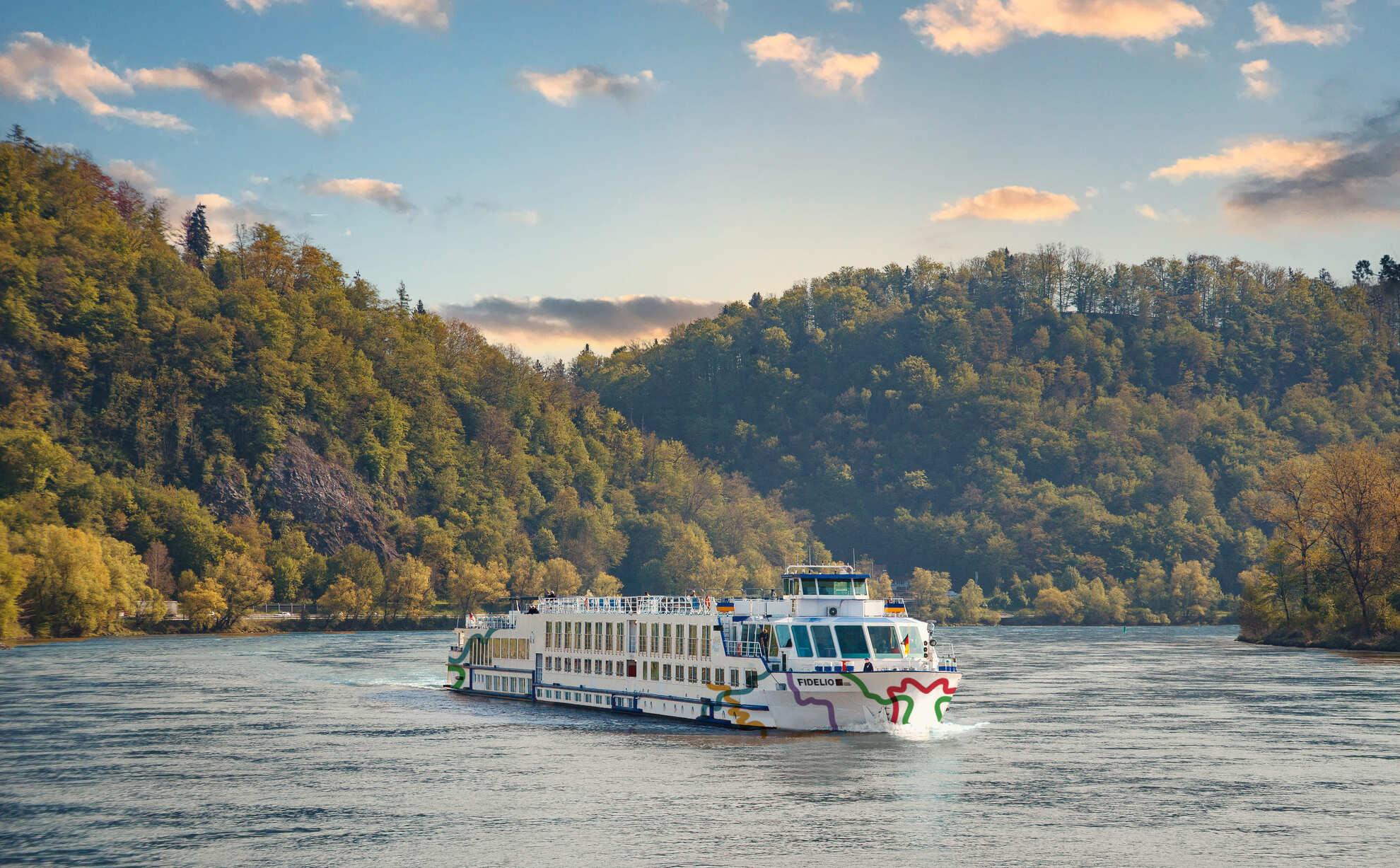 På denne rejse sejler vi med det 3+* skib MS Fidelio. Det familiære og hyggelige skib har plads til 146 gæster ombord fordelt på 72 kahytter og med skibets længde på 110 meter og bredde på 11,4 meter er der god plads på de hyggelige fællesområder.