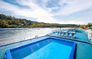 Fra skibets dæk kan du nyde de grønne vinmarker og historiske slotte, der glider forbi.