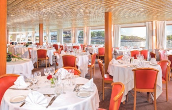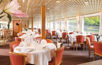På øvre dæk finder du også skibets reception, samt restaurant, med borde i forskellige størrelser. Atmosfæren er afslappet og her er store vinduer med udsigt til floden. Det er også på øvre dæk lounge og bar er placeret.