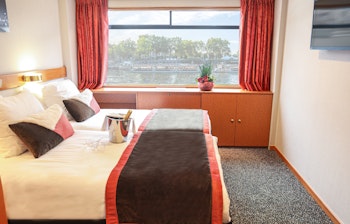 På main dæk finder du main-dæk kahytterne og på upper dæk, upper-dæk kahytterne. Alle kahytter er ca. 12 m2 store og alle har eget bad og toilet, håndklæder, safeboks, 220V stik og aircondition.