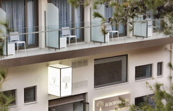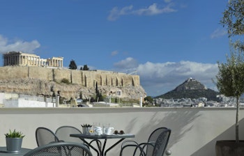 Acropolis Hill Hotel ligger placeret ved den grønne Filopappou-høj og tilbyder en moderne og afslappende atmosfære midt i Athen. Fra hotellets tagterrasse kan du nyde en flot udsigt over byen og Akropolis, som er særlig smuk i solnedgangen.