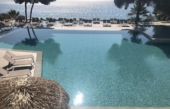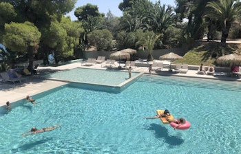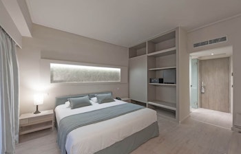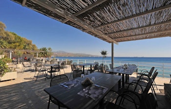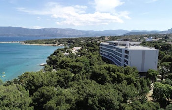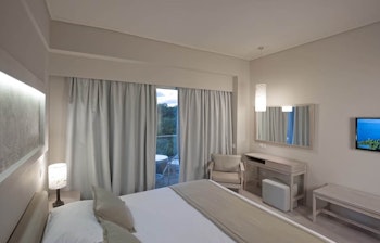 Hotellet 134 værelser er moderne og komfortabelt indrettet med A/C, tv, telefon, kedel, og minikøleskab og naturligvis gratis wi-fi. Hotellets buffet-restaurant byder både på international og traditionel græsk mad. Fra restauranten har vi en fantastisk udsigt til havet som vi kan nyde under morgenmaden og middagen.