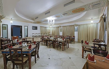 Måltiderne indtages på hotellets restaurant Cinnamon, der har udsigt over poolen og på tagterrassen finder man baren Stallion med en fantastisk udsigt over Swaroop Sagar-søen.