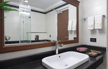Vi bor i elegante værelser i kategorien Tropic Green Room med delvis udsigt til de omgivende bjerge. Værelserne har aircondition, satellit-tv, køleskab, kaffe- og tefaciliteter samt moderne badeværelser med badekar.