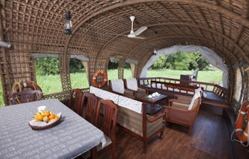 Ombord forkæles du med autentisk keralansk køkken tilberedt af din egen kok. Friskfanget karimeen-fisk, organiske grøntsager og duftende krydderier sammensættes til måltider, der er en sand fest for sanserne.