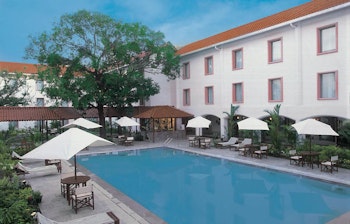 Hotellet byder på en udendørs swimmingpool, fitnesscenter, to restauranter og en café. Her er forskellige værelseskategorier, alle indrettet på samme måde og i samme stil, med udsigt til enten hav, pool eller haven. Alle værelser er indrettet med aircondition, tv, kaffe- og tefaciliteter samt moderne badeværelser med bruser.