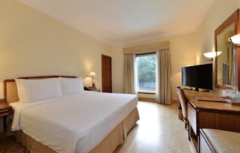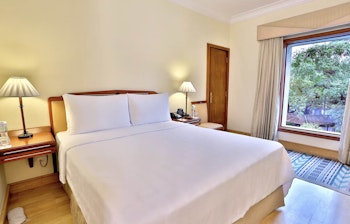 Hotellet har 85 moderne værelser fordelt på forskellige kategorier og byder på tre restauranter, en bar, udendørs swimmingpool, fitnesscenter og et ayurvedisk wellnesscenter. Der er også mulighed for at spille billard og skak, og der er gratis wi-fi på hele hotellet.
