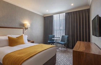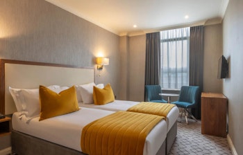 Værelser varerer i størrelse og indretning, men alle har et moderne touch og har eget badeværelse med hårtørrer og toiletartikler, værdiskab, TV og te/kaffe facilteter. Der er bar og restaurant på hotellet.