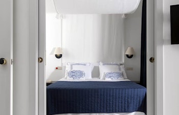 Hotellet er elegant indrettet i rigtig Middelhavsstil med hvide og kongeblå nuancer, godt lysindfald gennem de store vinduer og et fællesrum, hvor du kan nyde den afslappede feriestemning.