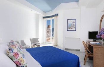 De 42 værelser, der findes både med og uden balkon, er alle enkelt indrettet i klassisk italiensk stil og med alle almindelige bekvemmeligheder. Hos Smilrejser tilbyder vi værelser med balkon og begrænset havudsigt, mens du mod tillæg kan bestille et dobbeltværelse med balkon og direkte udsigt over havet.