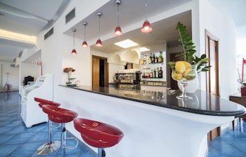Morgenbuffeten serveres i hotellet morgenmadssalon, der ligger på en etage under gadeniveau i forbindelse med receptionsområdet. I løbet af dagen kan du købe kaffe eller en kølig aperitif fra hotellets lille bar-hjørne, som du eventuelt kan tage med op på værelset og nyde på din balkon, mens du skuer ud over kysten. Drikkevarer kan købes ved henvendelse i receptionen.