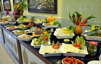 I restauranten Iris kan du starte dagen med deres morgenmadsbuffet, og om aftenen kan du vælge fra à la carte-menuen med både jordanske og internationale specialiteter.