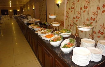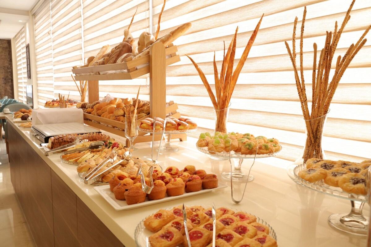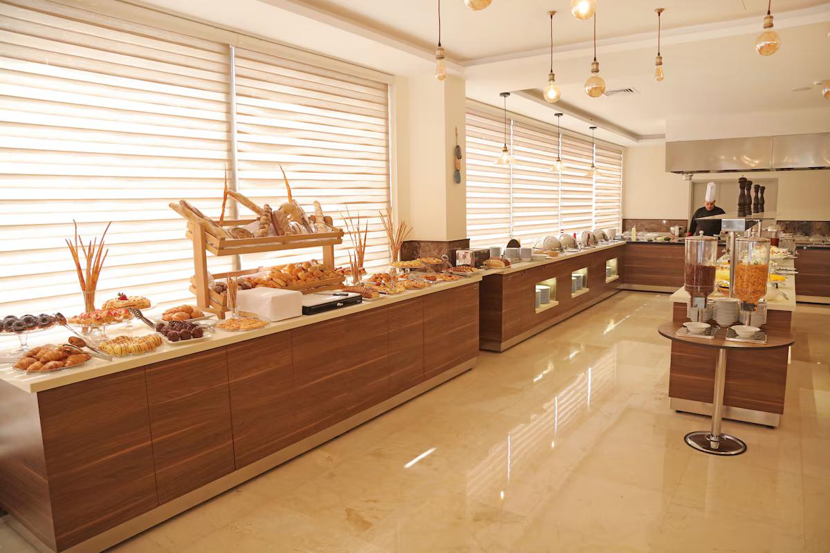 Restauranten serverer morgenbuffet, og om aftenen kan du vælge mellem forskellige arabiske og internationale retter fra à la carte-menuen.
