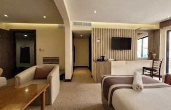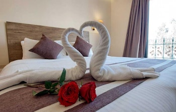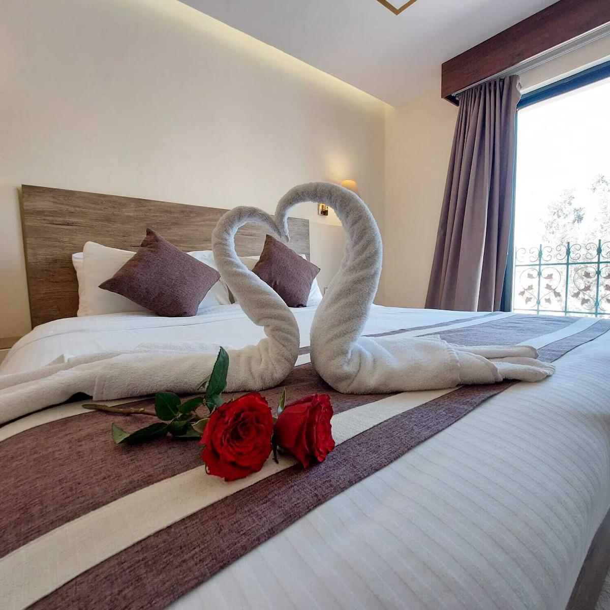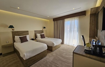 Hotellets restaurant serverer både lokale og internationale retter, og på den terrassen kan du nyde en forfriskning under den jordanske himmel. Værelserne er indrettet med fokus på komfort og her finder du aircondition, fladskærms-tv, gratis WiFi, køleskab og faciliteter til at lave kaffe og te. Alle værelser er udstyret med pengeskab og hårtørrer, så du har alt, hvad du behøver til et behageligt ophold.