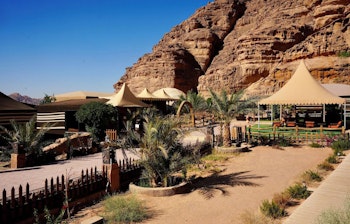 Nyd opholdet midt i Wadi Rums fascinerende ørkenlandskaber på denne camp, som består af teltvillaer, der er placeret i det beskyttede område med udsigt til de karakteristiske bjerge og sandklitter, der kendetegner dette særlige sted i Jordan.
