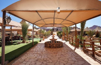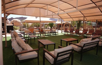 I campens restaurant serveres der jordanske retter, og du kan nyde måltiderne med udsigt over det omkringliggende landskab. Du kan benytte dig af campens udendørs siddeområder, hvor der er skygge i dagtimerne og en fredfyldt stemning, når solen går ned.