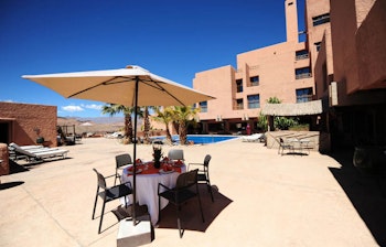 Hotellet har et stort, indbydende og udendørs poolområde flankeret af palmer og liggestole. Her finder du også caféborde- og stole, hvis du vil nyde noget godt at drikke eller spise under åben himmel fra hotellets restaurant.