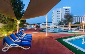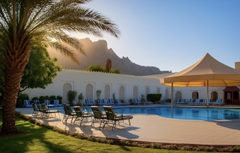 Fra hotellets tagterrasse kan du nyde udsigten over byen med de dramatiske bjerge i baggrunden, mens den indbydende udendørs pool tilbyder en forfriskende pause fra den arabiske sol. Når sulten melder sig, kan du udforske et væld af kulinariske oplevelser i hotellets restauranter, der serverer alt fra japanske specialiteter til internationale retter og lokale delikatesser.