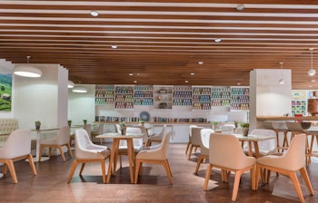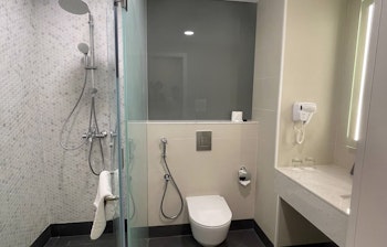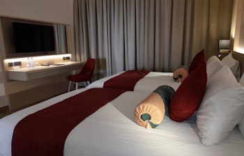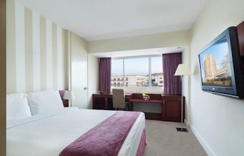 Der er gratis wi-fi på hele ejendommen, og på værelserne har du naturligvis aircondition, så du kan køle af på de varme dage. De 55 værelser er generelt pæne og simpelt indrettet med skriveborde, egne badeværelser og loft-til-gulv-gardiner, som du kan trække fra, som du har lyst.