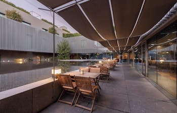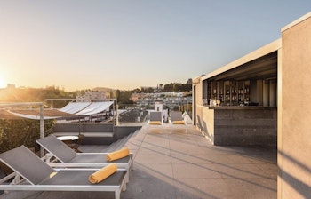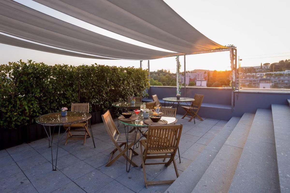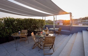 Derudover er der en skøn tagterrasse med en sæsonåben swimmingpool, små skyggefulde hyggekroge, en bar og masser af liggestole til at nyde solen på de varme dage. Og når sulten melder sig, kan du spise et godt måltid i den hyggelige restaurant.