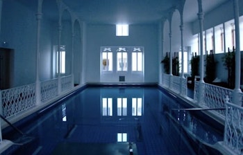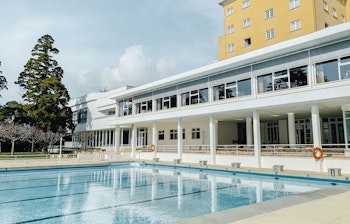 Byen Luso har i århundreder været kendt for sine naturlige kilder, og i 1937 satte man sig for at bygge et hotel med tilhørende pool, der kunne huse byens spaglade besøgende. Opgaven fik den berømte arkitekt Cassiano Branco, og resultatet blev Grand Hotel de Luso, der i dag er et indbydende hotel med en stor udendørs swimmingpool med tilhørende udspringsvipper.
