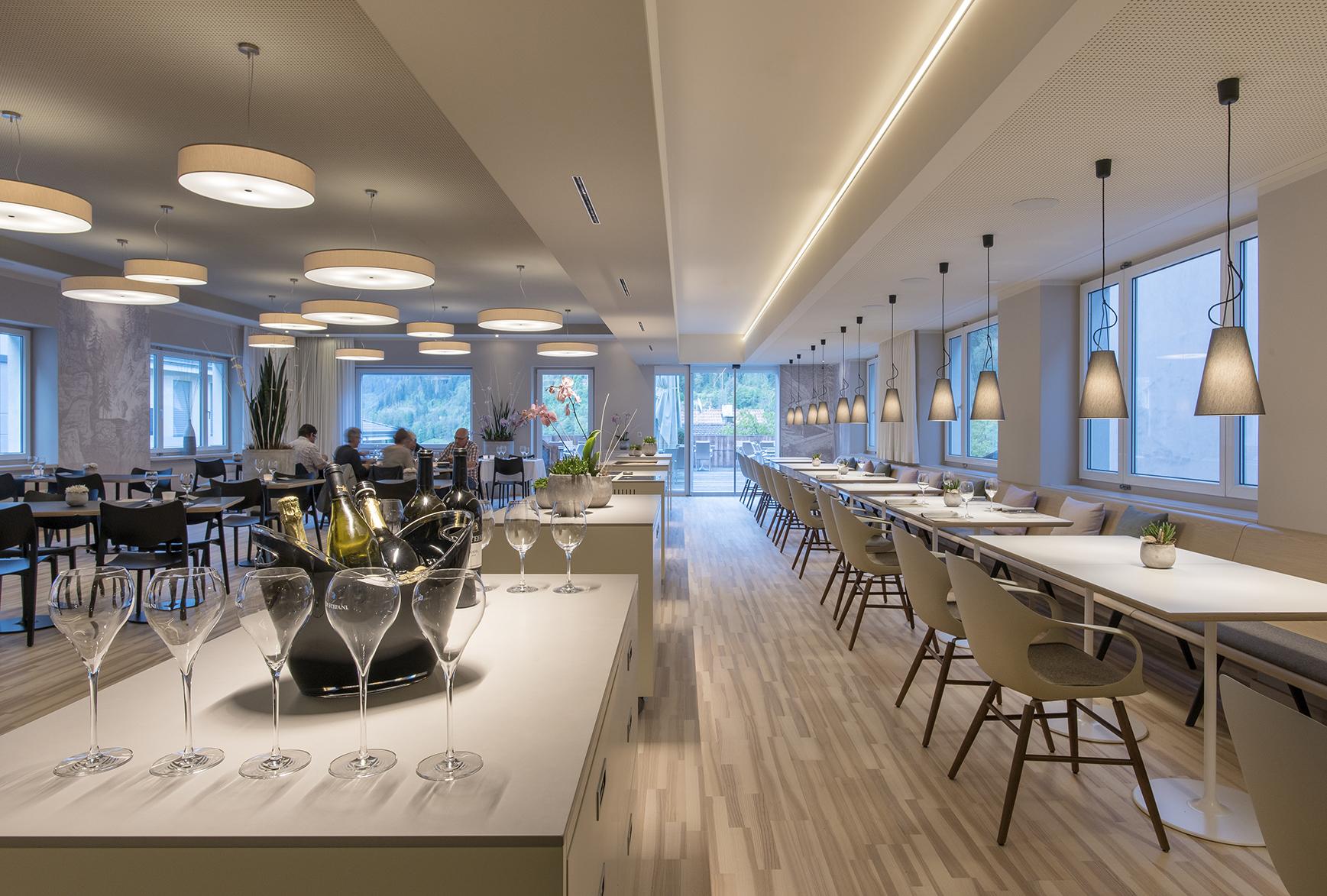 Hotellets restaurant "Kuhstall" serverer retter med fokus på lokale, friske råvarer og traditionelle alpine specialiteter. Morgenmaden serveres som buffet og giver en god start på dagen. Hotellet tilbyder et wellnessområde med boblebad, sauna og dampbad. Der er også mulighed for at bestille massage mod ekstra betaling.