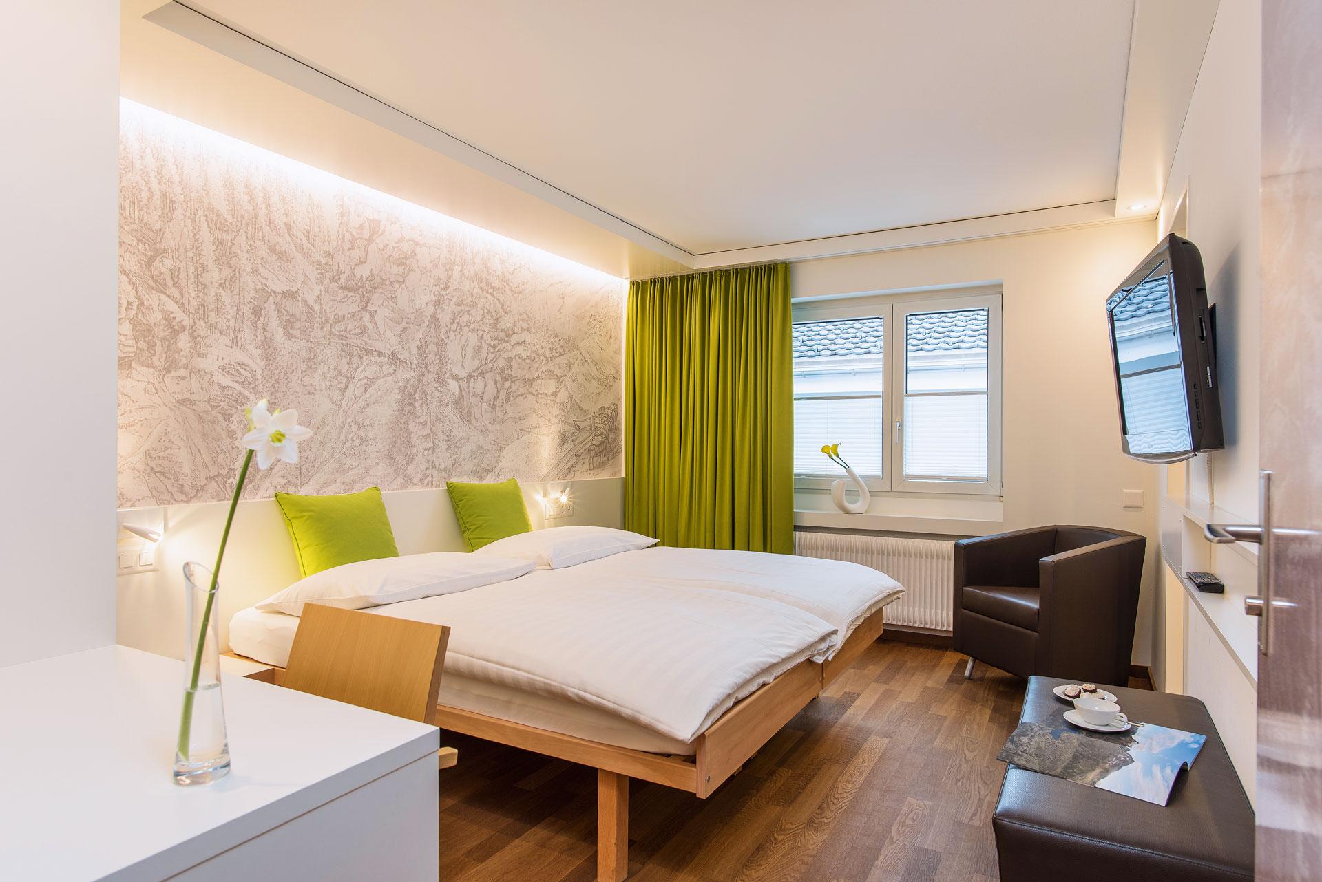 Boutique Hotel Walliserhof ligger centralt på torvet i den hyggelige by Grächen. Værelserne har, hver især deres eget særpræg med temaer som skiløb, schweiziske komponister eller jagt. Alle værelser er ligeledes udstyret med gratis WiFi, te- og kaffefaciliteter samt minibar.