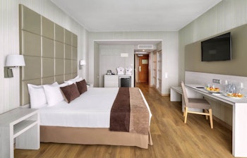 Værelserne er store og rummelige og udstyret med alt fra TV, safetyboks, hårtørrer og Aircondition, til Minibar. (Det er muligt at leje el-kedel i receptionen) Vi indlogeres på hotellets standardværelser med balkon og havudsigt, beliggende på 2-10 sal.