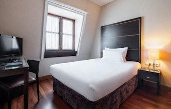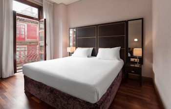 Hotellet ligger helt centralt med både Calatravas Bro, Guggenheim Museum og den gamle bydel indenfor gåafstand. Ud over områdets mange restauranter og cafeer tilbyder hotellet en udemærket restaurant og cocktailbar. Hotellets fitnessrum og sauna kan frit benyttes og du har ligeledes gratis WiFi på hotellets område. Værelserne er moderne indrettet med Smart Tv og aircondition samt badeværelse med hårtørre og toiletartikler. Der kan forespørges om kaffemaskine i receptionen.