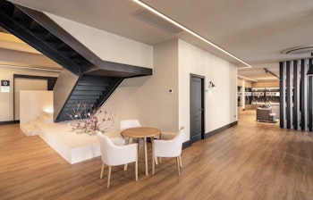 Lige overfor hotellet ligger stadionet San Mamés, hvor de fodboldgale baskere på kampdage flokkes hen for at se deres historiske fodboldhold Athletic Club spille i den bedste spanske række. Det berømte Guggenheim-museum ligger omkring halvanden kilometer fra hotellet – lidt længere, hvis du vil gå turen langs Nervión-floden.