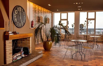 Udenfor kan du slappe af ved den store sæsonåbne swimmingpool eller på en solstol i den rummelige have. Hotellet har også en panoramaterrasse og et fitnessrum, og hvis ikke du vil gå på opdagelse blandt de mange spisesteder omkring hotellet, kan du sætte dig til bords i hotellets egen restaurant eller snuppe en aftendrink i baren.